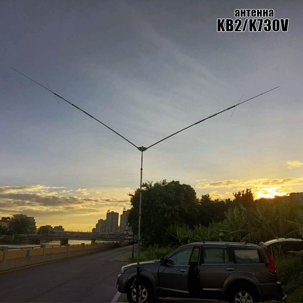 KB2/K730V это 4-диапазонная дипольная антенна V-образного типа, предназначенная для эффективной работы на диапазонах 7мГц 14 мГц, 21 мГц и 28 мГц.